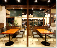 広さ85坪のカフェレストランです。海岸沿いにあり、海が一望できるよう海側を全面窓にいたしました。店内も開放的に仕上げ、天井はスケルトン仕上げ、しかしぬくもりを感じられるよう、木材をふんだんに使い、落ち着きのある空間に仕上げました。吊りの黒板には「本日獲れたての魚」が・・・。